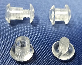 Clear Plastic Threaded ScrewpostsModel: AD-Post1Clear Plastic (PETG) Threaded (Male and Female) Fits 1/4" Hole Virtually Unlimited Uses from Attaching Items Together to Binding Booklets, etc. Made in USA