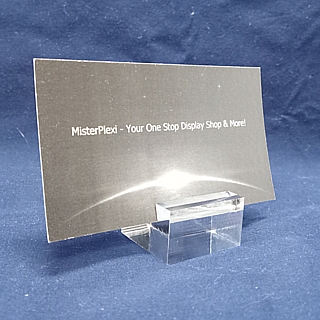 Clear Acrylic Sign BlockSBA2Overall Size: 1 1/4"W x 1 1/4"D x 3/4"H High Quality Clear 3/4" Thick Acrylic with Smooth, Polished Edges. Full Width Slit Included Great For Small Cards, Price Tickets, Name Cards, etc.