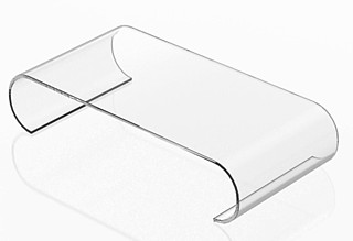 Clear Acrylic Scroll RiserModel: SCRL105Overall Size: 12"W x 5"D x 2"H 1/8" Clear Acrylic (0.118" or 3mm) Great for Small Products, Collectibles, Knick Knacks, etc.